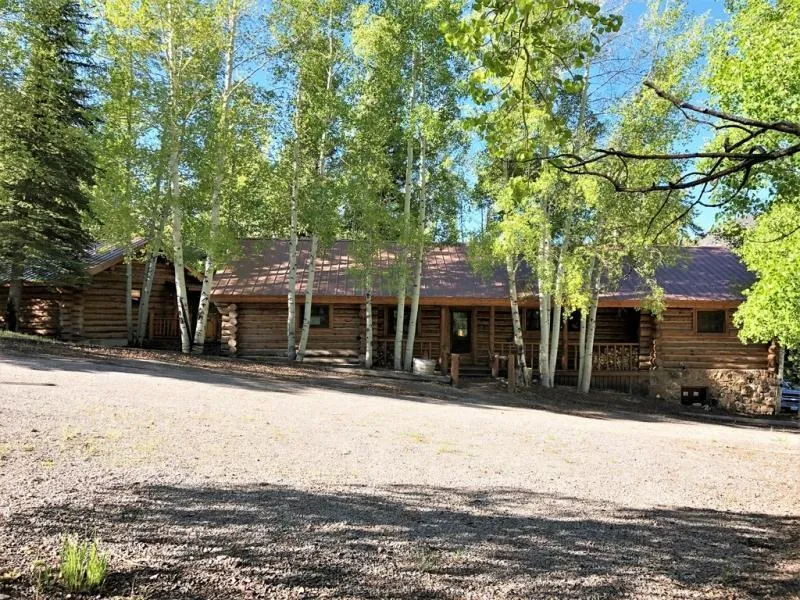 A beautiful custom log home nestled in the Aspens in the sought-after Lake Fork Estates. Sitting on just under an acre with amazing mountain views. The home offers one level living, which is rarity in the mountains. The main home offers a stunning living space with hardwood floors, tongue and groove ceilings with round log beams, pine beetle kill counter tops and a beautiful moss stone fireplace. The living opens to the dining and kitchen. Two well appointed bedrooms and baths complete the main floor. Most rooms have access to the fabulous deck to take in those incredible views. The deck connects to a charming guest cabin, offering one bedroom and one bath with a partial kitchen. The heated walkout basement is home to a one car garage, workspace area, and storage room. Irrigation water is available. This custom Colorado cabin is a must see!