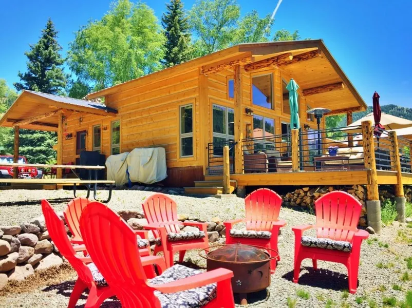 Located on the historic, over 100 years old, Vickers Horse River Ranch, one mile south of Lake City is a beautiful 3 bedroom 2 bath cabin bordering the banks of the Lake Fork of the Gunnison River. The cabin was remodeled in 2012 from the studs out and in with an additional 500 square feet added for a total of over 1500 square feet of living space. The cabin is filled with rustic charm and modern amenities. Offering two living areas and open kitchen/dining. The cabin offers a mix of antique style tin and tongue & groove ceilings with beetle kill pine floors, granite tile countertops, custom Alder cabinets throughout and tons of Marvin windows to take in the incredible river and mountain views. Outside enjoy three Evergreen decks, two covered one partially covered, a fire pit next to the river and 66 acres of common area, which includes four private fishing ponds, and one half mile o...