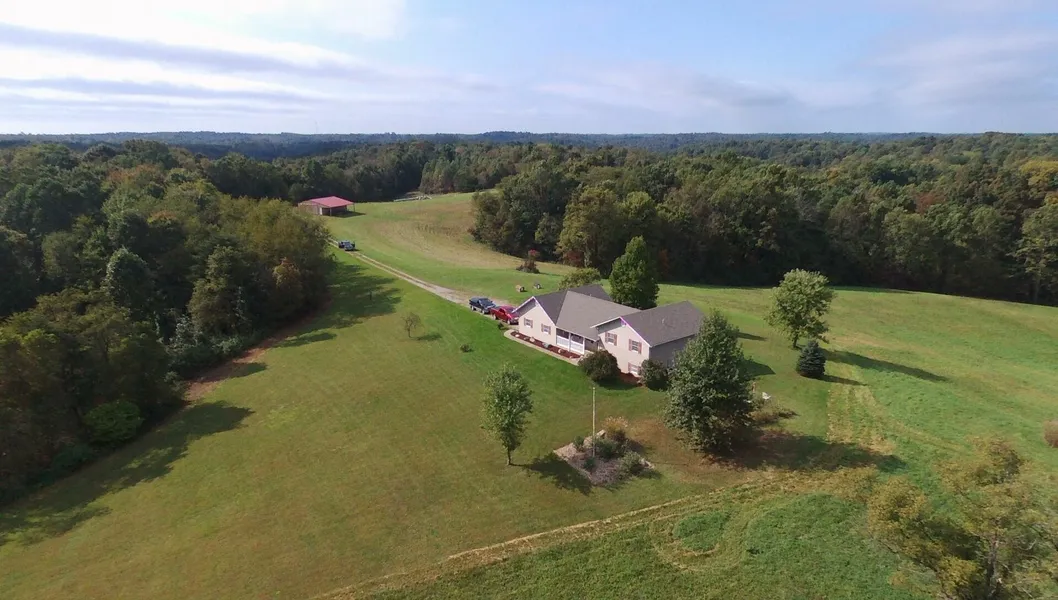 Beautiful rolling hills with plenty of woods and meadows. Deer and turkey hunters paradise. Split level home with new kitchen cabinets and granite countertops and hardwood floors. 30x40 pole barn