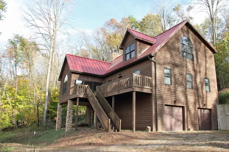 WOW-NOW 249,900...20k PRICE reduction! Between the Course & the Lake...Stunning Custom Cedar Style...If youre looking for privacy, treetop panoramic views, family-sized flow, and open classic design, heres one must-see home and woods. Theres plenty of parking space, plus an oversized 2-car garageroom for you and yours and toys. Enjoy the outside views from walkout lower to upper deck.with direct access to the all-seasons room, and then to the stunning and spacious great room, each with soaring wood cathedral ceilings. A floor-to-ceiling stone fireplace anchors it all, and abundant windows (including palladium designs) accent it all. The cooks-plus kitchen includes double ovens and breakfast/serving bar, and the finished lower level offers extended getaway living space. And its all exceptionally topped off by a gorgeous and most generous loft owners retreat, with its own wood cathedral ceiling and oughta-be-in-pictures master bath. Hide-A-Way Hills Club members enjoy boating & fishing lakes, golf & tennis, pool & beach, lodge & restaurant & much morecome see for yourself what all the 50th Anniversary celebrations are all about!