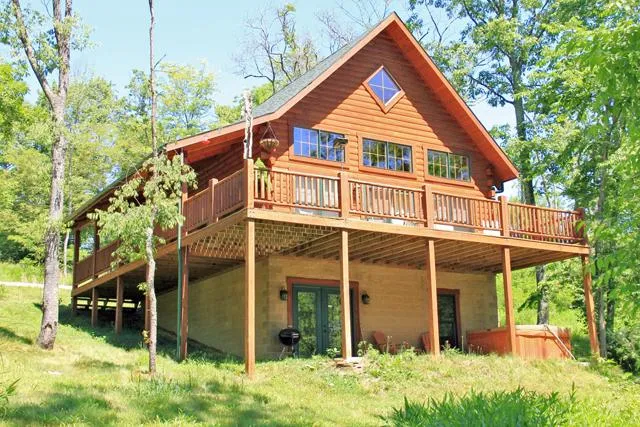 (SOLD - March 2013) NEW PRICE...NOW reduced $15,000! Wonderfully like-new and offered furnished for immediate enjoyment...and located in one of the premiere log developments in the famous Hocking Hills, vacation home-away-from-home to millions of visitors annually! Here youll find yourself centered between city conveniences and natural wonders, in this exceedingly quality-crafted and well-appointed full log custom design in Big Pine Estates, a long-established development provides quick & convenient access to everything. Recently re-stained, the home features lots of natural light from added windows, plus warm hickory wood flooring and ceramic tile in the baths. You'll find upscale touches & fixtures throughout, along with double walkouts from an oversized great room...lots of grand gathering spaces inside & out! There's an upper level loft + bedroom , plus a main level bedroom and fu...