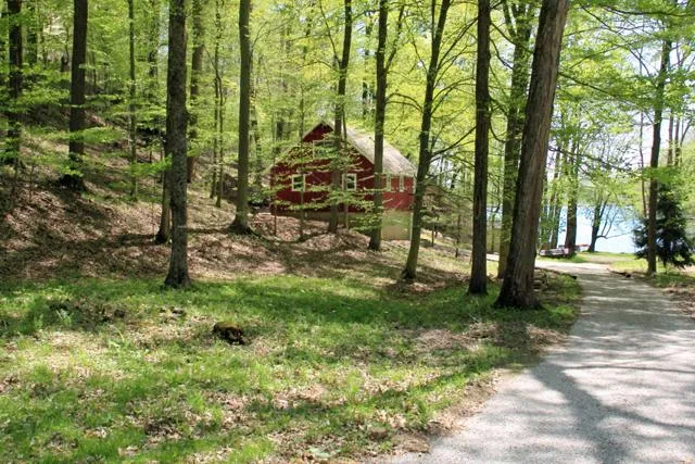 *SOLD - August 2014* Solid getaway, well-cared for, just looking for a few friendly updates! Overlooking one of the coves on Lake of the 4 Seasons is where you'll discover this never-before-offered-for-sale, unique getaway property...in Hide-A-Way Hills (HAH), resort community gateway to the famous Hocking Hills vacation region since 1961! Built in the early years of HAH, the cottage offers a handy drive-in garage/lower level, with unique stairway up to the great room. There's also entrances off the 3-side wraparound deck, which provides lots of space for outdoor living essentials plus inviting water views down to the cove. The property includes 2 lots, for plenty of play + parking space, too. The driveway has just been treated to new stone, and the cottage sports fresh stain and powerwashed decking. Step in to the 20x25 great room to appreciate lots of light from windows and skylights...