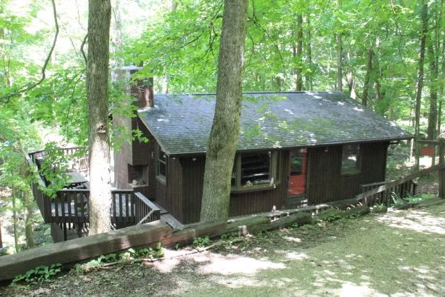 **SOLD - March 2015** Sought after renovated cabin in the woods..fully furnished! Wrap around deck provides outstanding views of your 4 additional wooded lots & lake. Wonderful open floor plan, highlighted by new kitchen w/stainless appliances, stone woodburning fireplace & cathedral ceiling. Additional family living area in walkout lower with bunk bed & living quarters as well as an oversized picture window! Convenient deep and easy access parking next to cabin! Charming, upscale rustic feel! Multiple lots for maximum privacy, not joined together.