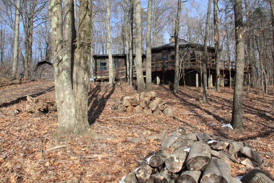 *SOLD - July 2014* You'll find lots of room to roam here among the trees, off a small court that backs to large acreage (privately owned). Also outside is a handy 12x16 storage shed, plus parking for more than a couple of vehicles, certainly. The home's front is basically walls of newer windows, providing invigorating (or relaxing, as you like it..) views of the woods. The hexagon-shaped center of the home offers easy flow in and out of the family/dining areas and large rear galley kitchen. If you're looking for a rustic feel, you'll certainly appreciate the warm that surrounds you, from floors to walls to beamed ceilings. The kitchen is also nicely lit with a skylight as well as overhead fixtures. One wing of the home provides two bedrooms and a full bath, and the second wing offers a private master suite with full bath and additional closet. The current owners have also added peace of mind via a whole-house backup power generator w/automatic transfer switch. And front-wrap decking is a BIG plus, too!