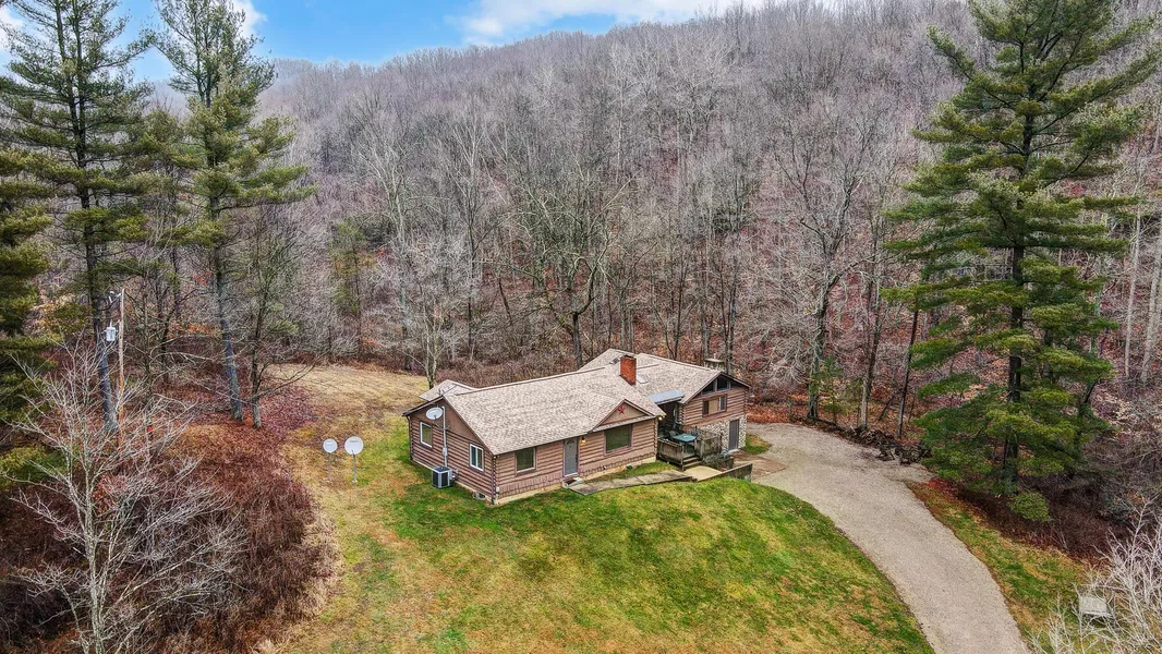 This authentic log cabin blends a rustic woodsy exterior with a contemporary interior for luxury living or vacationing in the sweet spot of Hocking Hills. This cabin can become your personal residence, or that getaway where you carve out time for YOU, while earning Short Term Rental income. The main floor has 3 bedrooms, a full bathroom with walk-in shower and a jetted tub, a luxury kitchen with black granite counters and matching black appliances, a formal dining room, and sprawling family room with brick fireplace. The screened in porch serves as a great spot for the bubbling hot tub. The unfinished lower level currently serves as a work area for cleaners and includes a full bathroom & washer/dryer. A full roof replacement was done in 2023. Offered as an active STR fully furnished.