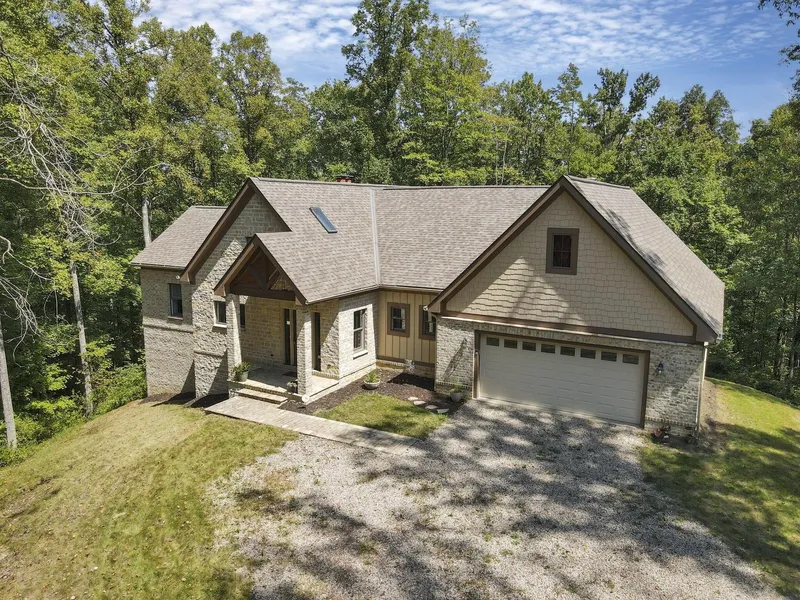 Escape to your own private retreat nestled on 49 secluded acres in the breathtaking Hocking Hills. This newly custom-built home offers the perfect blend of luxury and tranquility, ideal for those seeking a serene lifestyle or a lucrative cabin rental opportunity. Step inside to an expansive open-concept living space, where the modern kitchen takes center stage with its granite countertops and top-of-the-line finishes. The adjoining great room, with its striking cathedral ceiling and cozy fireplace, creates an inviting atmosphere perfect for relaxing or entertaining guests . The spacious master suite provides a luxurious haven with plenty of natural light and elegant design touches. The home also features a full walkout basement, offering endless possibilities for additional living space.