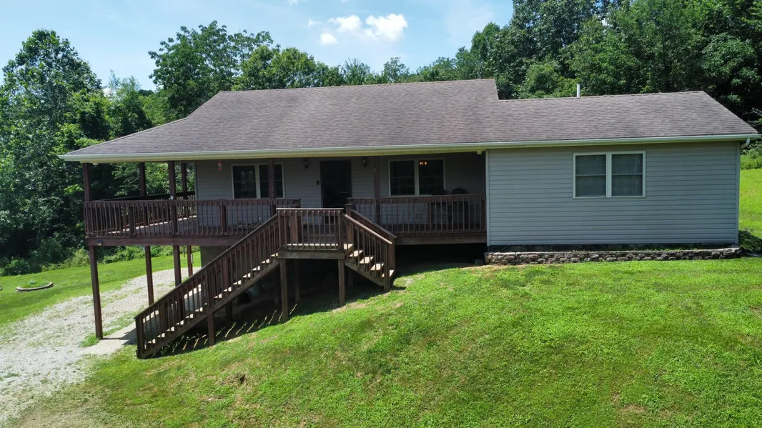 Nestled on approx. 7.5 acres of serene countryside, this stunning property offers panoramic views, peaceful seclusion, minutes away from all of Hocking Hills top attractions. The opportunities are endless for this property. Perfect for starting your own short term rental, or retiring your own day comfortably lounging on the wrap around porch. 32x60 pole barn equipped with concrete floors, to store all your toys! Inside you will find an impressive approx 1296 sqft of living space offering 1 bed upstairs (2nd located in basement), 2.5 baths, finished walk out basement. Open concept living. Large jacuzzi tub and walk in closet in master bedroom. Stainless steel appliances. Please respect this is private property residence. Property showings by approval only.