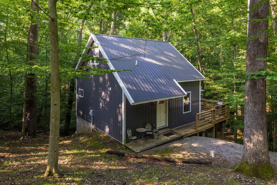Tucked away in the woods of Hideaway Hills, this modern 1-bedroom, 1-bath retreat sits on 3 scenic, wooded lots with a peaceful creek below. Built in 2021, the home features vaulted ceilings, expansive windows, and an open-concept layout that floods the space with natural light. A perfect blend of contemporary style and natural surroundings-ideal for a weekend getaway or a quiet full-time escape. Don't miss this opportunity-seller is highly motivated! Hideaway Hills amenities include: 24/7 security, lending library, golf course, clubhouse, beach, disc golf, organic garden, ATV trail, shooting range, Lodge, pool, tennis and pickleball, workout facility. NO short-term rentals permitted within HAH.
