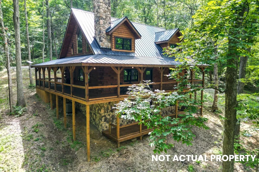 Discover luxury living in the heart of nature at The Reserve at Big Pine, a 52-acre retreat just minutes from Hocking Hills' best attractions. Cabin 6 sits at the end of a private cul-de-sac on 5.5 deeply wooded acres, making it one of the community's most coveted lots. This 2,450 SF log home was designed for both relaxation and entertaining, with 3 bedrooms and 3.5 baths (one on each floor), a spacious loft, a game room, media room, and a wrap-around porch with expansive 12' decks. The Great Room impresses with soaring ceilings, a stone fireplace, and floor-to-ceiling windows that frame the forest views and blur the line between indoors and out.