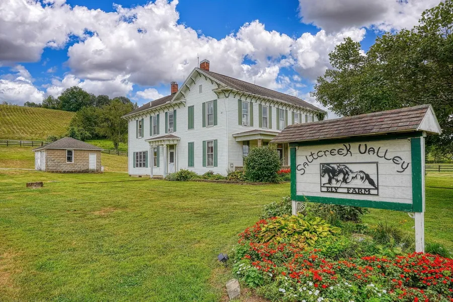 Bring your animals! Offering 4.2 acres, fenced pasture, and a barn, you don't need to do any prep work-this property is already set up for you and your animals. Need space to store your toys or work on hobbies? There is a detached garage with a heated room, and a block storage building. The farmhouse, built in the late 1800's is full of character and has 4 bedrooms and 3 1/2 bathrooms. The home exudes old world charm with some of the original hardwood floors, soaring ceilings, transoms, layout, and country views. Inside the front door you are greeted by a beautiful staircase and spacious foyer. To the left is a large living room that flows through french doors into the centrally located dining room, perfect for those large gatherings. Featuring a corn stove, that although has not been used for a few years, once added rustic warmth to the space. The kitchen was remodeled in the 1990's, along with updated plumbing throughout the home. Enjoy a meal or warm drink in the cozy eating nook while admiring the pastoral countryside through the bank of windows. The back stairs are located in the kitchen, adding a touch of traditional farmhouse design. Upstairs you will find 2 en-suites, along with another bedroom and hall bathroom. Downstairs is the half bathroom and 4th bedroom that has plenty of room to add a full bathroom if you desire. Steeped in history yet full of opportunity, this Hocking Hills homestead is ready for its next chapter - whether that be a private home or a welcoming country inn. Located 1 mile outside of Laurelville, it's conveniently located to Circleville, Logan, Chillicothe, and Lancaster.