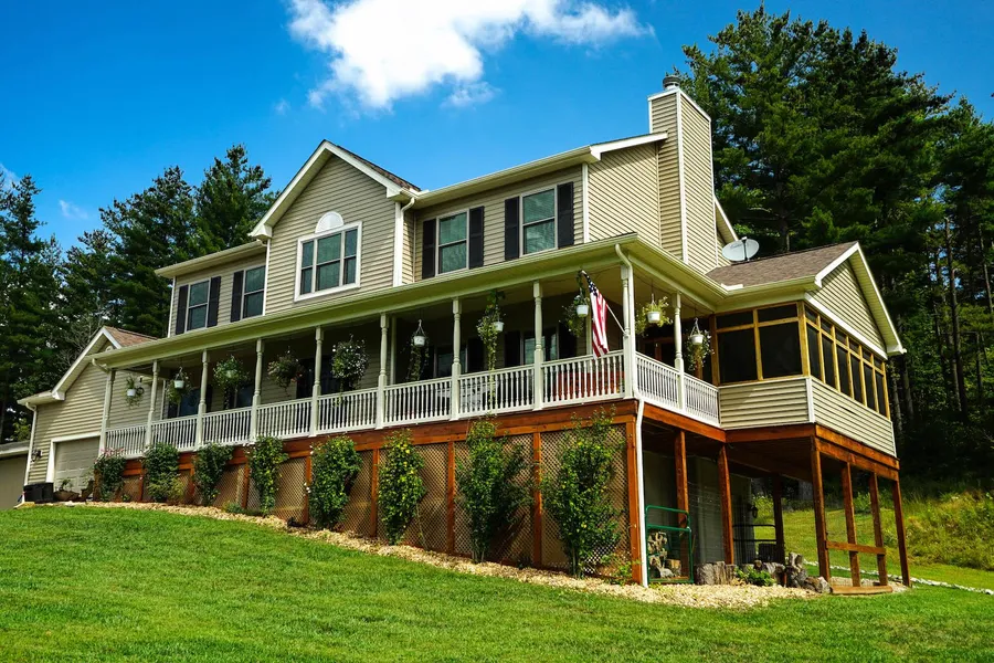 - Wraparound porch runs the entire length of the front of the home and wraps around to the sunroom.