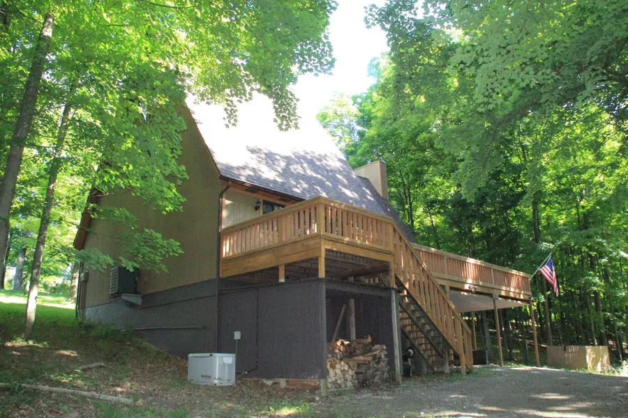 *SOLD - September 2016* NEW ROOF and Resort Lifestyle included! Open & bright, with soaring great room w/stone fireplace featuring Napoleon insert, plus spacious kitchen w/large dining area that make this home the go-to destination for entertaining & family gatherings. Gorgeous views from the wide wall of windows and ample solid surface counter space will delight every cook from the novice to the iron chef! Everyone will also easily flow in & out to expansive decking overlooking the beautiful Hide-A-Way Hills, as well as the inviting rear screened porch.. plenty of space for the entire family to share their day or enjoy a game. Main level offer two spacious bedrooms, full bath & laundry. Suite feelings up..loft bedroom offers a private bathroom, ample closet space and lots of sitting spots to relax and undwind at the end of the day..including a 3rd-level treetop den. Garage w/heat and AC is a car buff's dream, and the lower level also includes a workshop & half bath. Also deep storage & wood sheds outside. Co-listed with Lisa Chapman, 614-582-5116.