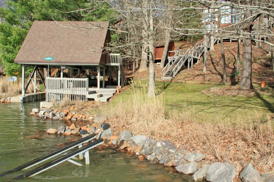 *SOLD- Sept.2017* Lake of The Four Seasons Dam Rebuild Completed! Cherry wood exterior has been completely powerwashed and re-stained..along with the steps and decking as well! Architectural Design..Exceedingly Engineered..Panoramic Views..Awesome Sunsets..Concept Construction..Attention to Details..and much more, of course! Overlooking Lake of the 4 Seasons in Hide-A-Way Hills,so near the natural wonders of the famous Hocking Hills since 1961..private resort lifestyle! New exterior pro wash & stain, heat pump & well pump. Easy direct access, along with with multiple entrances lakeside & laneside, with a finely finished garage plus mirror-sized workshop below. Also outside is a rock-solid boathouse w/finished upper, large storage shed, multiple lifts & 2nd dock, plus plenty of level wide-open waterfront spaces.Step inside the decidedly singular home to marvel at the singular "Tree House" plan featuring easy-flow open multiple living levels & lofts, plus a wall of windows like few others, we're sure. Wood's the word throughout, with a multiple-hardwoods design & feel, accented by gorgeous stone, custom stairs, view-tiful kitchen w/walk-in pantry/office, MBR Suite,laundry/craft rm w/W-D, dual HVAC, new exterior wash+stain, new heat pump & well pump, premium+ carpeting, pellet stove.