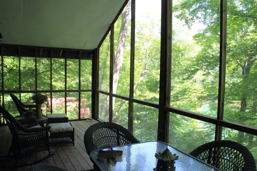 *SOLD - December 2016* Located on the no-wake beach cove, Lake of the 4 Seasons, in Hide-A-Way Hills, getaway gateway to the famous Hocking Hills since 1961. 156' water front, easy access to home & 20x25 garage via concrete driveway (shared), w/plenty of room for outdoor essentials. Freshly washed exterior, inviting 10x24 screened porch overlook, newer retaining walls and dock w/electric service, lower level walkout deck w/hot tub (just madeover). Beamed cathedral ceilings, upscale cozy woodstove, easy-flow great room plan, spacious main-level master w/deep & wide closets, lower guest bedroom & den/bedroom, full baths on both levels. Appliances include washer & dryer, serving bar w/cooktop, pantry & hall storage closets, additional lower storage space. Septic system has just being updated with new tank. Close to main 24/7 security gate entrance & other community amenities, including fis...