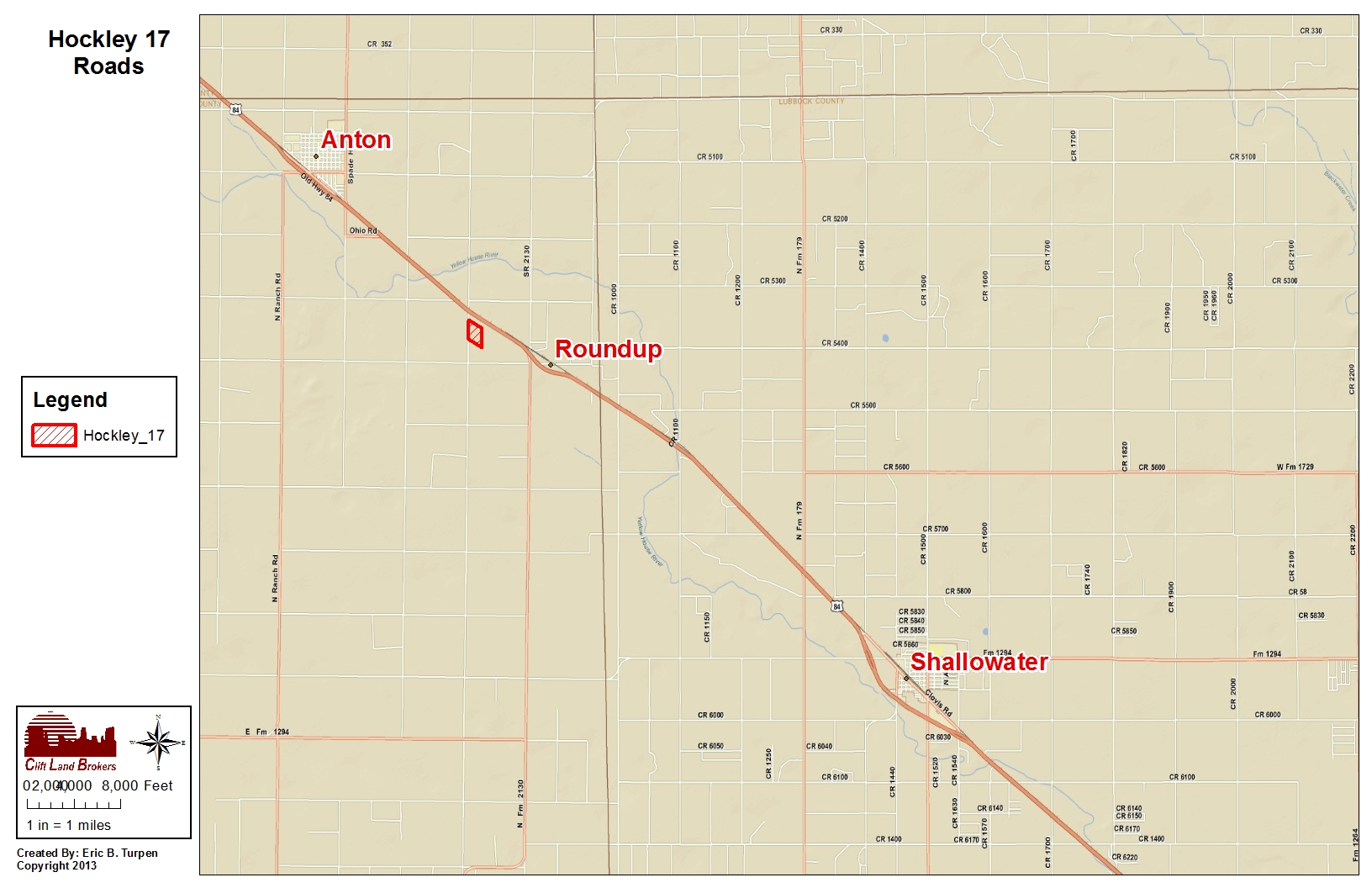 Research Parcel InformationFrom Anton, TX go southeast on Highway 84 approximately 2.5 miles to King Rd. Turn south and go approximately 1/4 mile to the property, which is on the east side of the county road.