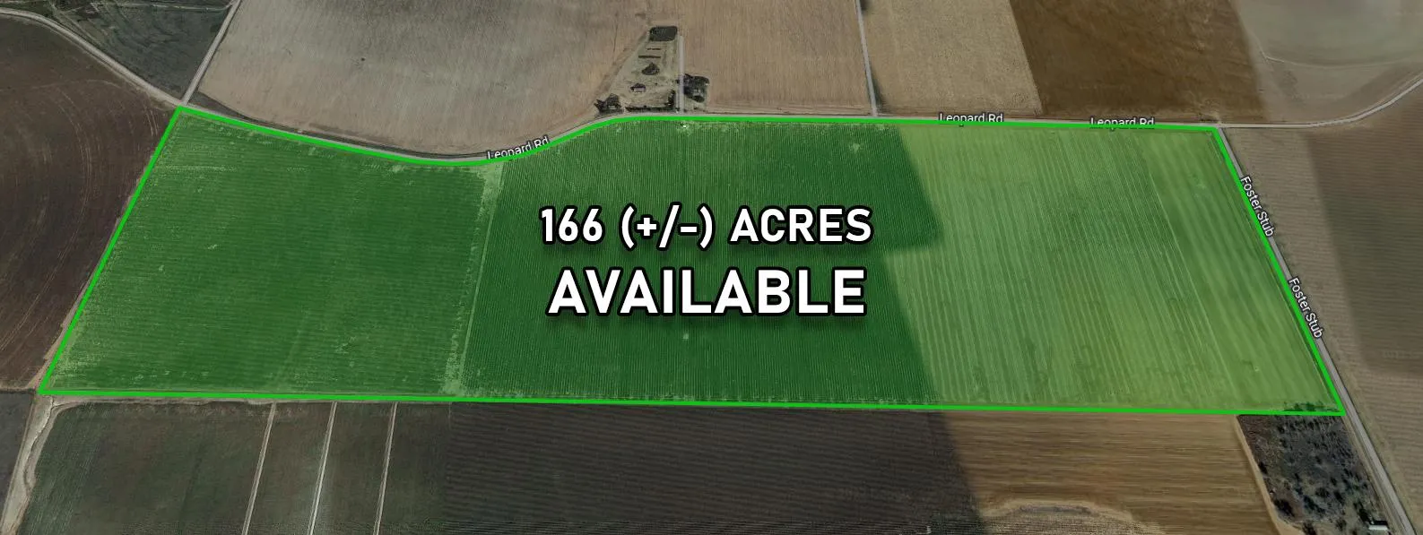 166 (+/-) acres of quality farmland for sale in the highly desired Ropesville area. Drip irrigation installed with numerous wells. High producing land! Approx. 1460 ft of paved Foster Stub Rd frontage and electric available. This property has potential to make great farming income, or with developments in proximity would make a great residential development for those looking to build outside the city. This property is Tract 1 of 2, for a combined 282 (+/-) acres available.