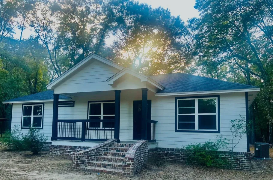 Make this modern craftsman-style home yours! Situated on 1.5 acres, close to city amenities and schools and allows for spacious rural living! This home welcomes you with a custom-built front porch with a brick step entry. It features a split floor plan, 3-bedroom, 2-bathroom design that has been fully renovated and is turnkey! The home has new engineered hardwood and carpet throughout. The living room allows for rest and entertainment with its open floor plan. The kitchen has an island with seating, breakfast nook, and has new wooden cabinets, granite countertops, and new appliances. The bedrooms are comfortably spacious and have new carpeting and generously sized closets. Master Bathroom has a walk-in shower and both bathrooms are tiled and have new granite countertops. An outdoor deck has been added to view the spacious backyard that allows plenty of room to enjoy the outdoors. ...