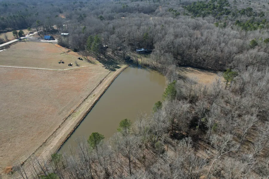 The surrounding land further enhances the appeal. Approximately 14 acres are dedicated to fenced pasture, ideal for livestock, while the remaining acreage features a mix of rolling hardwood terrain, an open field, and a previously stocked 1.75 acre pond. This diverse landscape caters to multiple outdoor activities, including raising livestock, hunting, fishing, or simply enjoying the peaceful country atmosphere. An old barn and screened-in shed provide additional space to store your gear.
