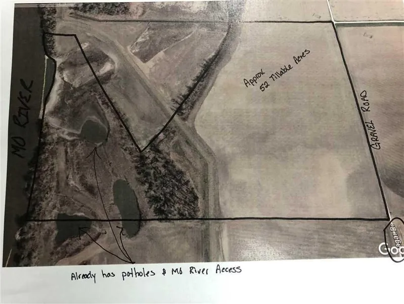 Any avid waterfowl hunter will tell you they have heard of the Golden Triangle in North Central Missouri. What most don't know is that same exact scenario is in place in the Northwest corner of Missouri also. This 90 acre tract is situated right square in the middle of numerous areas that hold massive numbers of migrating waterfowl each year. This tract nestled in Holt County right against the Missouri River and directly between the famous Squaw Creek National Wildlife Refuge (now named Loess Bluffs) and one of the most highly managed Missouri State Conservation areas (Bob Brown). You will be hard pressed to find another area with as much waterfowl traffic on a consistent basis. Add in the proximity to Big Lake which also holds staggering numbers of migrating waterfowl and you can see why we call this area the Golden Triangle of Northwest Missouri. This recreational tract also offers a good amount of yearly income from the approximate 52 acres of tillable acres. These tillable acres provide some fine dry field hunting for ducks and honkers as well as Spring snow goose action during the conservation order. Finding a premier recreational property that provides good income is the best of both worlds. There are already a few natural potholes that were created from the 2011 Missouri River flood for water hunting without the need for further development. Act quick on this one as it is one of a kind and opportunities like this are few and far between.