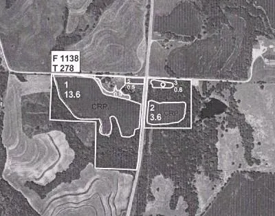 Tract #1: Includes approximately 24 acres +/- with 13.6 acres of CRP, great hunting, & rural water access. Offered at $60,000.00 or $2,500.00/acre.