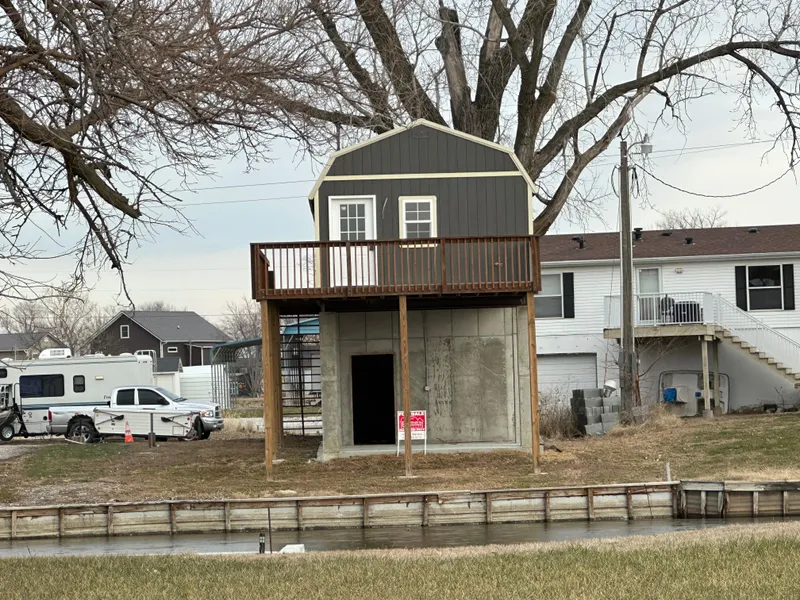 Here is a newly constructed, elevated cabin that features electrical & plumbing, insulation, wall coverings, durable metal roof, and a new septic system. It also includes a wraparound deck, all situated on a nice quiet cove & dead end road! All utilities are already connected and ready for use, making this cabin move-in ready and hassle-free.