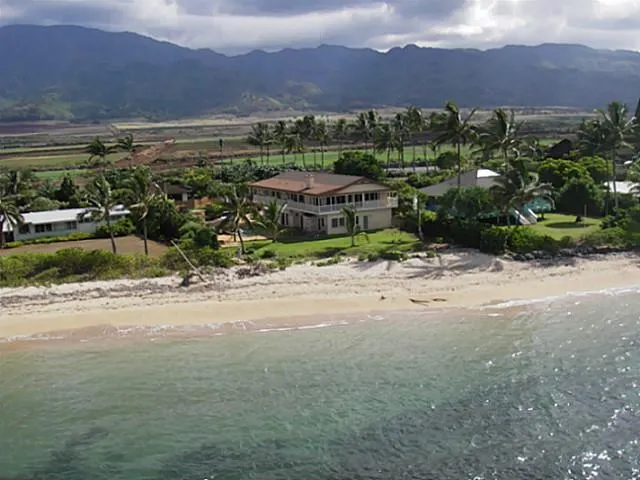 WOW: 3 Homes on over an acre of landscaped beachfront property! Classic plantation-style main beach home w/high ceilings & wrap-around lanai. 2 other redwood homes; 2 bedrooms each. Fantastic panoramic ocean & surf views. All on a level lot w/over 100' beachfront. Great location, easy commute to Honolulu. Minutes away from Historic Haleiwa Town. Hawaii beach living at it's best.