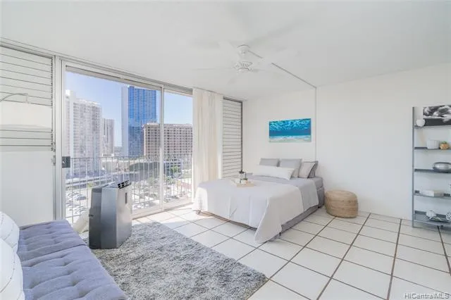 Charming and move in ready! This bright & updated unit in a secured building has expansive city & peek-a-boo ocean views from one of the top floors of the building! Enjoy ceramic tiled floors, mirrored walls, newer appliances, portable AC unit, new faucet & light fixtures and an open lanai to enjoy the fresh air. This wonderful, move in ready unit also boasts a low maintenance fee of $350/month which includes electricity, hot water, sewer, & water. Community laundry, responsive site manager, over night security, refurbished pool deck & lobby also make Holiday Manor a great building to live in or invest in. Parking is currently available for $90/month. Conveniently located within walking distance to Don Quixote, Walmart, Keeaumoku, Ala Moana, Waikiki and numerous shops & restaurants!