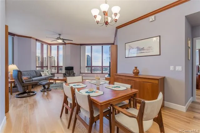 Enjoy the panoramic mountain, city, and ocean views from this impeccably maintained and recently renovated 3 bedroom, 2 bath unit at the prestigious Imperial Plaza! As you enter through the foyer, the high ceilings and spacious living room give this unit a grand feeling, perfect for entertaining. Each of the bedrooms have floor to ceiling windows and lanai access allowing you to enjoy the beautiful views. The highly appointed master bedroom boasts a custom closet and recently renovated master bathroom with a Jacuzzi tub. Stay cool inside with Central AC or step outside and enjoy the amazing location and walkability of Kakaako. With great eateries and shopping within walking distance, the location can't be beat. Pet friendly, 2 covered parking stalls, storage unit, and VA approved!