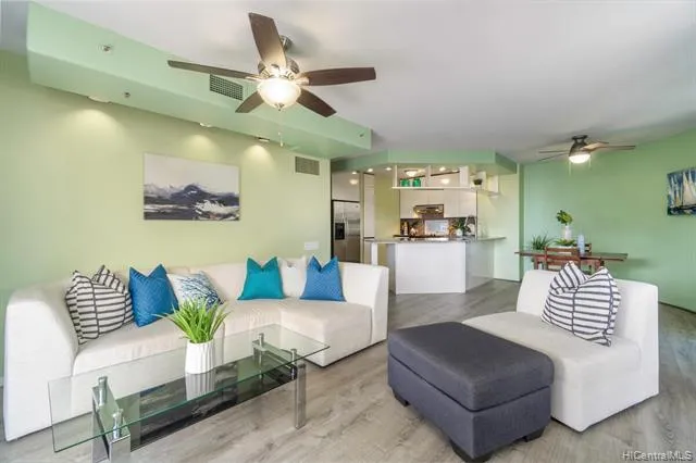 Largest 1 bdrm floor plan on the high 33rd floor! This spacious, corner-end 1Br/1Ba/1Pkg offers extra large open lanai; enjoy the scenic mountain, valley and the brilliant colors of city light views. Move-in ready unit consists of vinyl wood flooring, Roman shades, complete upgraded bathroom, front load washer-dryer, drinking water filtration system, and other improvements to appreciate. The condo features central AC, ceiling fans or just enjoy the natural trade winds. Honolulu Park Place is a premier condominium with resort amenities ranging from heated pool, pool-sized hot tub, tennis, basketball, racquetball courts, fitness gym, bowling alley, BBQs with pavilions, Koi pond & many more to enjoy a healthy & active condo living lifestyle. Pedestrianly friendly in short distances to Queens Hospital, Hawaii Pacific University, eateries, chinatown, shopping centers, bus-lines & many more es...