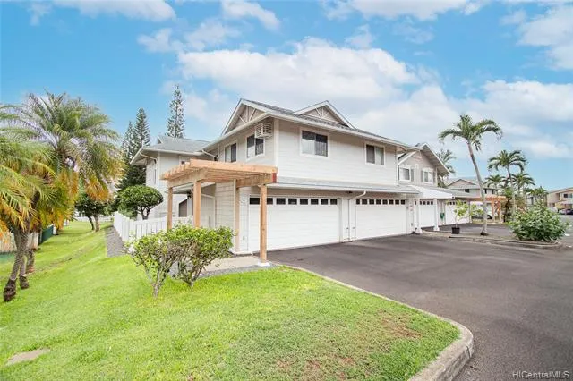 Rarely available, highly desirable 3 bed/2.5 bath/2 car garage townhouse at the edge of the golf course! This end unit offers privacy & extra windows to let in lots of natural light. You can also enjoy coffee on the lanai from your own private, fenced in yard. Spacious lay out affords an eat in kitchen that opens to the living & dining area while your large master bedroom with vaulted ceilings & walk in closet is upstairs with the rest of the bedrooms. Parking on the driveway allows for 2 extra cars and guest parking is close by. Light, bright, airy, & super clean! Conveniently located in central Oahu close to shops, restaurants, grocery stores, & freeway access! Check us out on our virtual tour link or join us this Sunday, November 1 online at 1:45 or Sunday Open House from 2-5.