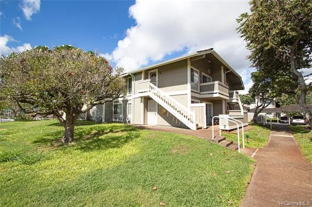 Come home to this adorable MOVE-IN READY, ground level, two-bedroom unit at popular Royal Palm at Waipio Gentry! This desirable, corner end unit also faces East with a park as your neighbor and boasts luxury vinyl plank flooring, new paint, carpet and AC. Enjoy your morning coffee in your enclosed lanai and cool off in the afternoon with a dip in the pool! Located within minutes to Schofield/Wheeler, Foodland, restaurants, Costco, and easy freeway access. BRING IN YOUR OFFER TODAY!