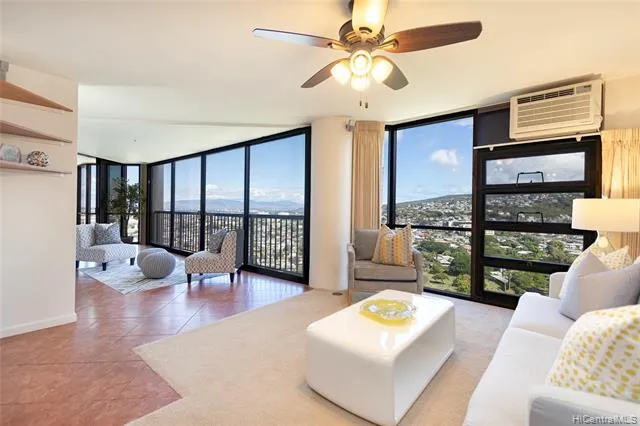 Enjoy unobstructed, panoramic city and mountain views from this beautifully maintained 2 bdrm, 2 bath unit with 2 covered parking in the highly desired "05" stack in Craigside Building 1. Located in the lush and serene Nuuanu Valley close to Downtown Honolulu and minutes away from H-1 and Pali Highway. Features include a remodeled open kitchen, built-in cabinets and an enclosed lanai for added square footage. ADA accessible. Building offers resort-style amenities including two pools, outdoor rec area, gym, sauna, tennis courts, and more! Must see to appreciate!