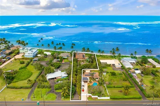 Take a glimpse at this private oceanfront estate in the heart of Waialua. Working investment property. Don't miss the link to the Matterport 3D virtual tour, and plat map. Showings possible July 17th in the morning & July 25th. Beachfront, beachfront, & privacy!! This is a large parcel with two separate TMK's making this a large compound. After a long day surfing and swimming in the ocean or pool escape upstairs and enjoy this LARGE, spacious home, with views from every room and plenty of space for privacy. Watch the sunset into the horizon on the front deck. If it happens to be raining outside and a pool day isn't possible put your feet up and a movie on in the home theater. This home is the perfect escape for anyone. This will be sold together with the neighboring parcel 1-6-7-13-32. Land square footage listed is total for both parcels.