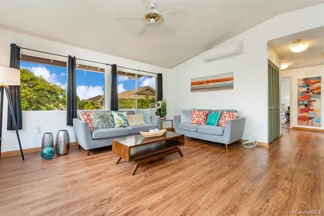 A well maintained 2 bedroom, 2 bath with 2 car garage condo offers simple living as primary residence or a great vacation home. Located on the 2nd floor with an efficient floor plan and tree top views. It features washer/dryer, split ACs, ceiling fans and great storage space in the garage. Ko Olina Fairways offers great amenities of pool, hot tub, BBQ and recreational areas, this is the more affordable entries into the Ko Olina resort living. Located in a quiet end of Ko Olina Resort with short distances to the 18 hole Ko Olina Golf Course, Ko Olina Marina, 4 secluded beach lagoons and five star hotels including Aulani Disney Resort & Spa. Pet friendly and VA approved project.