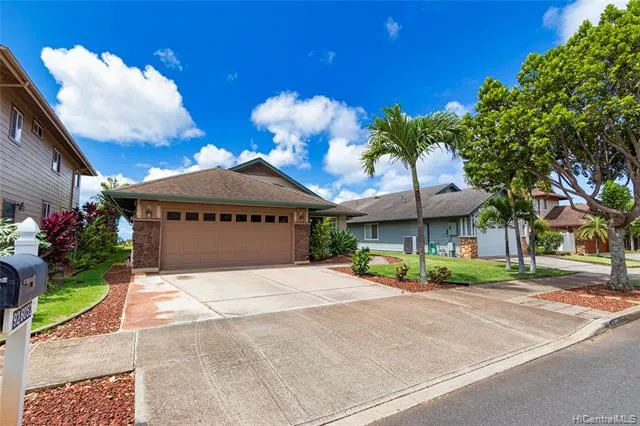 NEW LISTING!!! Enjoy beautiful ocean and mountain views from this nicely maintained 3 bdrm + den/2 bath SINGLE LEVEL home at the Highpointe in Makakilo. With nearly 1,800 sq ft of interior living space, this home features fresh interior paint, vaulted ceilings, laminate floors throughout, 2-car garage and an owned PV system with net metering agreement. Conveniently located in a quiet neighborhood just minutes from shopping, schools, parks, and restaurants. Don't miss this fantastic opportunity!