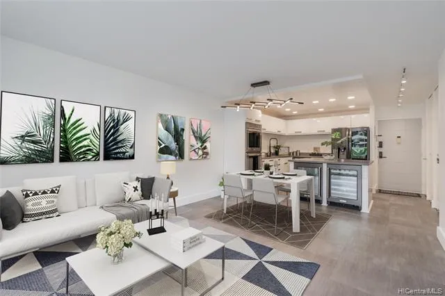 Possibly one of the nicest units in the building! This 1/1/1 in the highly desirable Villa on Eaton Square has been remodeled to perfection! Entertain your friends in the state of the art kitchen with custom Latitude cabinets, top of the line LG appliances, Silestone quartz countertops and a large island with bonus wine and drink fridge. New luxury vinyl plank floors throughout, custom lighting fixtures, remote control Hunter Douglas window coverings and a fully upgraded bathroom complete with Bosch Washer & Dryer. Appreciate the convenience of a full Food Pantry, Kulu Kulu Bakery, Post office and a variety of shops downstairs in this well managed, secured Pet friendly (verify) building. Located just minutes from Ala Wai Boat Harbor, the beach and Ala Moana Shopping Center. Maintenance fee includes electricity, sewer, water, hot water, central AC and amenities: pool, bbq area, sauna, wor...