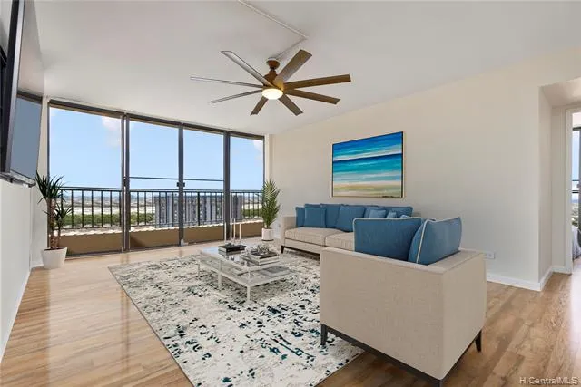 VIEWS, VIEWS, VIEWS this high floor unit boast amazing views from Tripler hospital to pearl harbor. This must see spacious condo with fabulous views from every room as well as Juliet balconies in each room. Open kitchen floor plan with granite countertops . Laminate flooring throughout and no popcorn ceiling. Bright and breezy with lots of natural light and amazing breezes there is no need for AC in this well maintained unit. The unit has fire sprinklers, is convenient to freeways and shopping and minutes from downtown Honolulu. The reasonable maintenance fee is kept low by solar panels to provide electricity to the common areas. The property is gated for security and comes with one covered assigned parking.