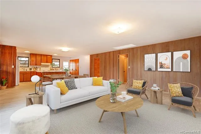 This spacious single level home with an open floor plan, sits on a flat 7279 square foot lot, ready to be landscaped with your favorite grass, plants or fruit trees. Freshly painted and well cared for 3 bdrm, 1 ½ bath home has been upgraded with vinyl plank flooring throughout, new paint and remodeled bathrooms. Conveniently located in Wahiawa Park just minutes from McDonalds, other restaurants, Walgreens with easy access to the freeways. **Some photos have been enhanced with virtual staging**