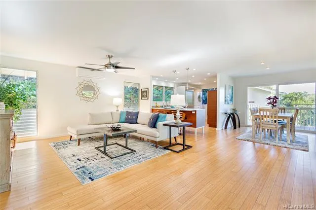 NEW LISTING! Renovated executive home nestled in a peaceful, lush valley in highly-desired Kalani Iki Estates. This charming 3 bedroom, 2 bath residence features a functional, wide-open floor plan and an expansive wraparound lanai to unwind and soak in the colorful sunsets and the soothing sounds of nature. Custom kitchen includes sleek Studio Becker cabinets and Miele stovetop. Other highlights: bamboo flooring, brand new Berber carpet in bedrooms, split ACs, 2-car covered carport adjacent to the home. Freshly painted inside and out and move-in ready! There is also potential to possibly expand underneath the home or use as storage. Community is pet-friendly and features guest parking, salt-water pool, tennis/pickleball courts, walking paths, BBQ area. Great location near parks, schools and Kahala Mall. Don't miss this one!
