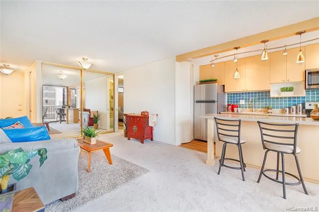 Awesome location within walking distance to shops, eateries, & the bus line. Located In the heart of Makiki yet quiet and cool with views all around. The Camelot Is a well-maintained building that has recently taken care of their plumbing retrofit, spalling, painting, elevators, and is currently renovating their gym. NO special assessments. Nice entertaining spaces with pool, party room, saunas, bbq areas, ample guest parking, on site manager & nighttime security. This unit is move in ready with updated cabinets & counters, a refreshed shower/tub, fresh paint, new carpet, & new appliances. Come see why this is a great place to call home.