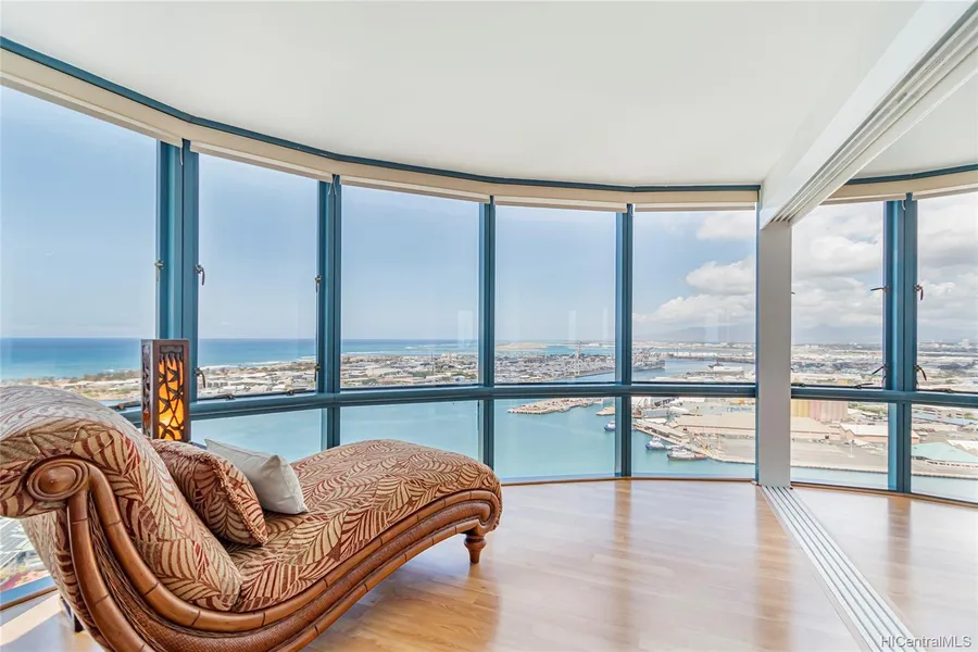 Enjoy SPECTACULAR views - Sunset, Coastal, Honolulu Harbor, the Reef Runway, Waianae mountains, sparkling Pacific Ocean, city lights, Sand Island, and Aloha Tower - from this PRIVATE 2-bedrooms with ensuite PENTHOUSE in the heart of the business district. A spacious entry foyer, high ceilings, two banks of windows that allow natural light and views, and ample open living space that separates the bedrooms are available in this prime "01" unit. The primary bedroom is spacious with vaulted, coffered ceilings, AMAZING views of the stars, Honolulu Harbor, container terminals, built-in shelves, and a custom closet system. The guest bedroom is generous with views of the glistening Pacific Ocean. The freshly painted unit includes one parking stall, operational windows, and automated roller shade window treatment. This well-maintained building offers a slew of amenities, including a heated infinity-edge saline swimming pool, gazebo, observation tower, recreational deck, Jacuzzi, gym, BBQ, conference, and community rooms, 24 hr security, and on-site Residential Manager. Located downtown, close to theater, restaurants, galleries, and boutiques. Open House on 10/09/2022 Sunday from 2-5 pm.