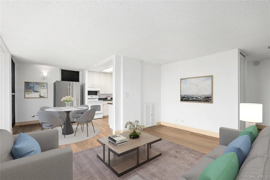 Well-maintained 2 Bedroom / 2 Bath CORNER/END unit featuring LARGEST 2 bedroom floor plan with new vinyl plank floors in living room/kitchen and carpet in bedrooms, new paint, enclosed lanai, Washer/Dryer inside unit, all in a PET-FRIENDLY building! Enjoy the city views in this conveniently located building with community storage room on each floor, pool with showers, on-site building manager and covered & secured parking stall in enclosed garage!