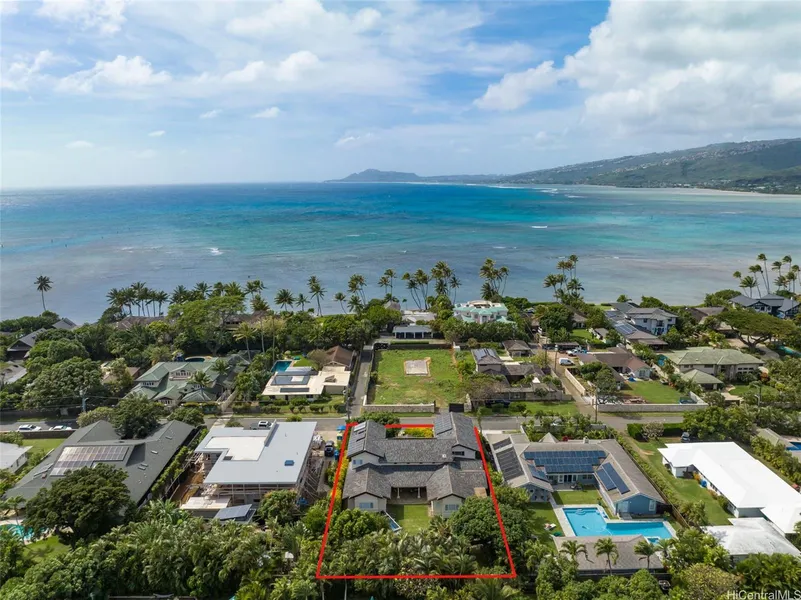 Don’t miss this immaculately maintained and tastefully upgraded 5 bdrm/4.5 bath executive style residence, including a 1 bdrm/1 bath LEGAL OHANA guest quarters, in the highly coveted Portlock neighborhood. Situated on an expansive 14,788 sq. ft. LEVEL lot, this 4,836 sq ft home features a grand living room with soaring ceilings, beautiful hardwood floors throughout, and an expansive grand primary suite on the first floor. The 1 bdrm/1 bath guest quarters has a separate entry, its own kitchen and gorgeous Diamond Head and ocean views. Other features include 44 owned PV panels with net metering agreement, a spacious open kitchen, an expansive covered lanai, and a beautifully manicured backyard with an above-ground endless swimming pool, perfect for indoor/outdoor entertaining. Immerse yourself in the best of island living as ocean access is just across the street. Conveniently located near...