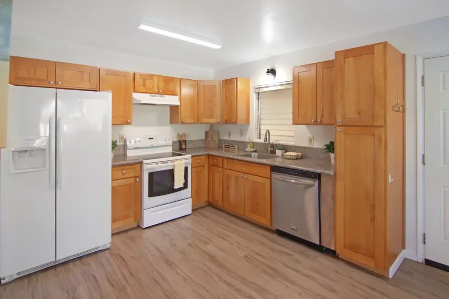 Excellent opportunity awaits you in Makaha! Detached, 3bd/2ba single family home with fenced in yard offering amazing views on the Waianae Moutain range and minutes from famous Makaha Beach. No HOA or maintenance fees! Luxury vinyl planking throughout the entire house, newly painted. Security gate provides privacy for your property and large, two car carport. Tankless water heater provides plenty of hot water without taking up space. Outdoor shower behind carport to rinse off after your afternoon surf session. Potentially VA Assumable! Come check it out.