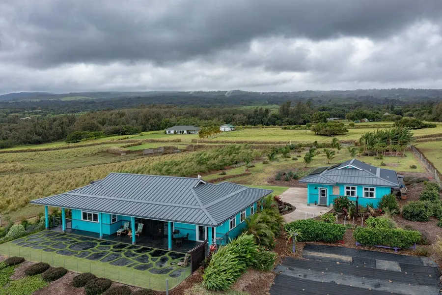 Rare opportunity to own a private sanctuary in the highly desirable Kapanaia Bay area of historic North Kohala. Home exudes quality, care and attention to detail. Feel your blood pressure fall as you turn down the lane toward this beautiful 2-BR, 2.5-Bth home, framed by the ocean, pastures, orchards, and picturesque clouds dancing off Pololu Valley and Kohala Mountain. The 1,200 sq ft 3-bay garage, wired for a future EV charging station, provides ample parking and work space. One bay is partitioned as a flex space with half-bath. Property is beautifully landscaped with lava rock, soft zoysia grass, hundreds of decorative and native plants, irrigated fruit and vegetable gardens. brbrAs you enter this immaculate home, gentle breezes keep temperatures in your control, with air flow through jalousie windows, lanai screen doors and designer ceiling fans. Open layout highlights ocean and mountain views, with 9-foot ceilings accentuating spacious feeling. Many extras including custom-built lava rock outdoor shower off primary bedroom and covered lanai, abundant pantry and closet space. 458-square-foot covered lanai with stained/stamped concrete and decorated sod-outlined rock paver designs accent a stone Buddha statue. Kitchen appliances include Bosch dishwasher, Kucht Professional range/oven, Whirlpool fridge with French doors and bottom freezer, Moen Motion-sense kitchen faucet and more! Silestone countertops. Second bedroom can double as den/office, with attached bath. Home is connected to county water, and is powered by a robust photovoltaic system with a backup generator. From your lanai, gaze out at the fenced pasture toward ocean and Maui views, enjoy nightly sunsets. Or stroll to the end of your property to paths toward Kapanaia Bay as well as miles of hiking trails along the coastal preservation area. Lawn mowers, new storage shed, Samsung washer/dryer set, dishwasher, freezer, fridge and more included. Some furniture may be available for separate sale.