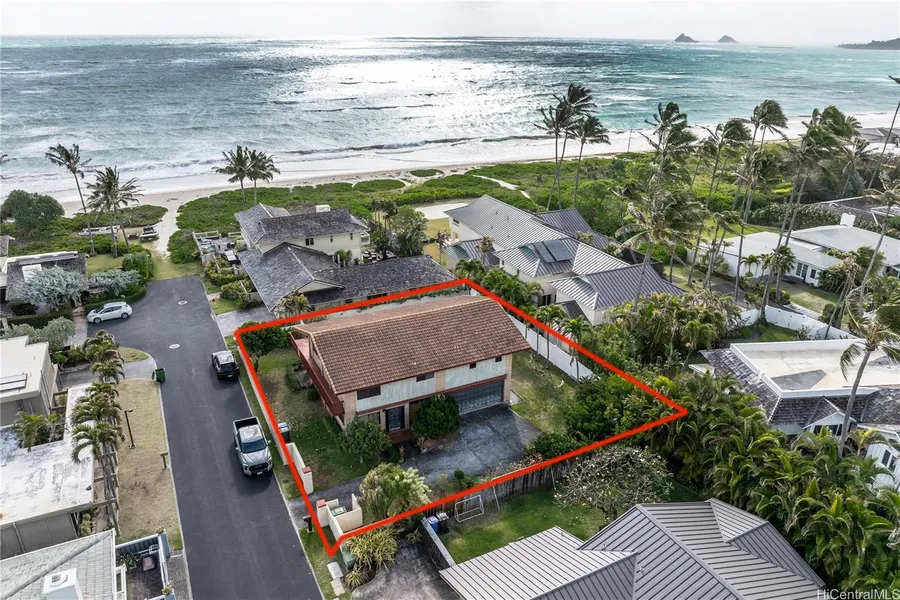 Welcome home to the Hale Kai Surf & Racquet Club, this private beachside community is comprised of 14 single family homes. Residents of the community benefit from first class amenities such as a pickleball court, tennis court, pool, and a clubhouse. Make your way down the private lane to house F which is situated ONE LOT AWAY FROM KAILUA BEACH ACCESS. Bring your contractor to transform this property into the Kailua Beach house that you have been waiting for. The second level of the home features vaulted exposed beam ceilings and a living room with a delightful framing of the ocean. Ample amounts of yard space present opportunities for indoor/outdoor living. Conveniently located just a short drive away from Kailua Town, MidPac Country Club, and more!