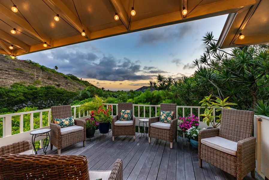 Welcome to The Tree House in the coveted Kalani Iki neighborhood! Enjoy the best of indoor/outdoor living with OCEAN VIEWS in this quiet, nature-filled retreat. Perched on the hillside at treetop level, this 3-bedroom, 2-bath home offers an open floor plan designed to capture the beauty of nature with a wall of windows and three large sliders that seamlessly connect the indoors to a spacious wraparound Ipe lanai. The home is perfect for entertaining, with a great flow between the living spaces, abundant natural light, great cross breezes and a peaceful connection to the lush greenery. For those looking to expand, there is an 800 sq ft downstairs unfinished basement area perfect for a hobby room and potential to be combined with the main level as interior space - plans available. Located in a tranquil valley with tree-lined streets, this home is part of a community with fantastic amenitie...