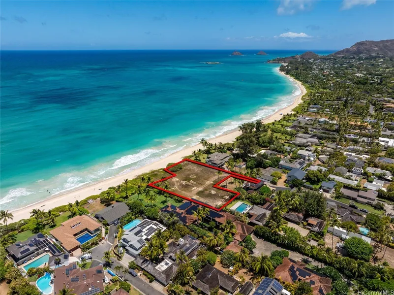 With approved building plans, permits, including the SMA Major permit, and entitlements already in place, this extraordinary Kailua oceanfront parcel is ready for your masterpiece estate-saving years of work and waiting. Rarely available, this expansive property offers over 38,000 square feet of land and an impressive 200 linear feet of pristine white sand frontage. Architectural renderings by renowned Hawaii architect Peter Vincent showcase the vision and potential of this world-class estate, combining contemporary island elegance with timeless coastal design. Perfectly situated at the end of a private road on one of the most famous and breathtaking beaches in the world, it presents an unparalleled opportunity to create a legacy residence. Imagine waking up to spectacular sunrises, with turquoise waters stretching endlessly before you. Enjoy direct access to the ocean for swimming, surfing, snorkeling, paddling, or simply strolling along the soft white sand. More than an oceanfront property, this is a rare chance to own a true piece of paradise-with immediate build potential, world-class design inspiration, and the prestige of Kailua Beach's coveted lifestyle.
