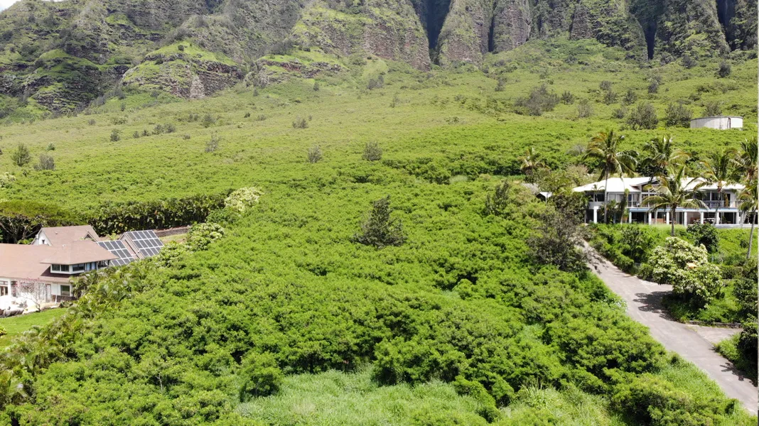 Mauna Olu Estates upper rim lot over 1.4 acres in size. Build a dream home with unobstructed views of the ocean and beautiful Makaha Valley. Gated community with 24 hour security features nicely maintained roads and landscaping. Underground utilities - no power lines.