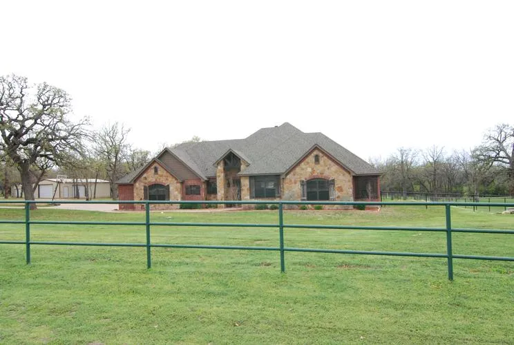 Stake your claim! Custom built home sitting on 3.7 acres surrounded by pipe fencing with just the right amount of Texas attitude. Knotty Alder cabinets, granite counters, stained concrete floors, Wood burning Fireplace with gas starter, 8' doors, wired for surround sound, big closets, well designed floor plan, high ceilings, warm & inviting. 30 x 40 insulated workshop with electric & plumbing + 300 sqft bunkhouse.